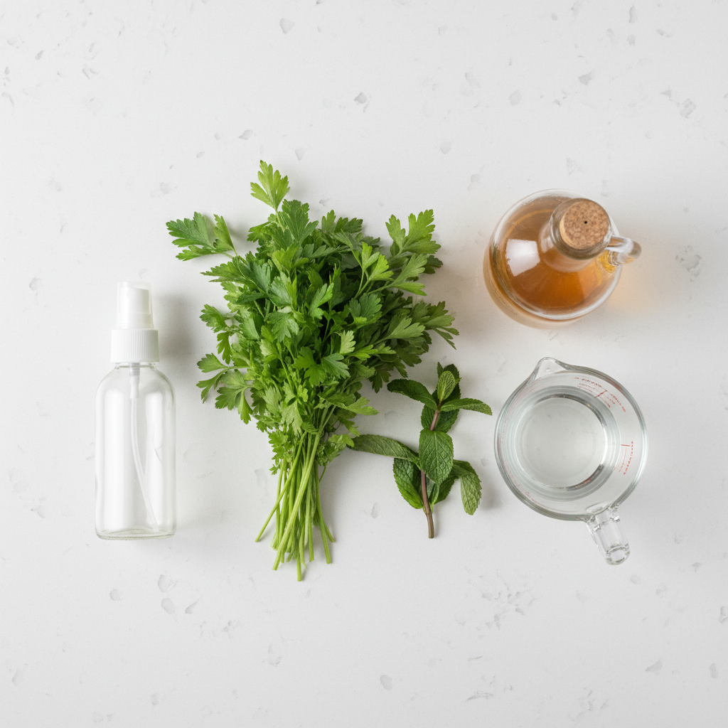 - Steep the Herbs: Bring the cup of water to a boil. Roughly chop the parsley and mint leaves to help release their oils. Place the chopped herbs in a heat-safe bowl or jar.
