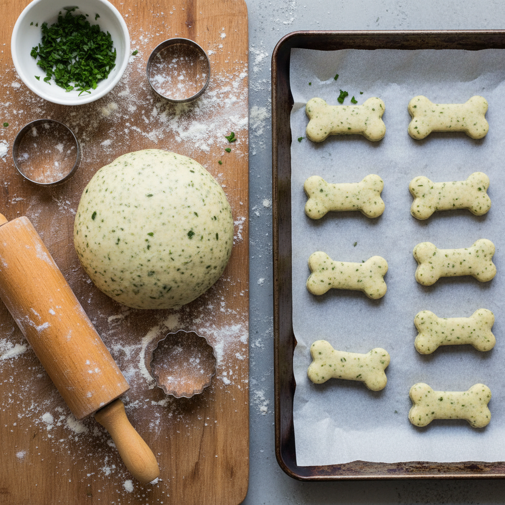 - Roll and Cut: Lightly flour a clean surface and roll the dough out to about 1/4-inch thickness. Use your favorite cookie cutters to cut out shapes. A bone or leaf shape is always fun!