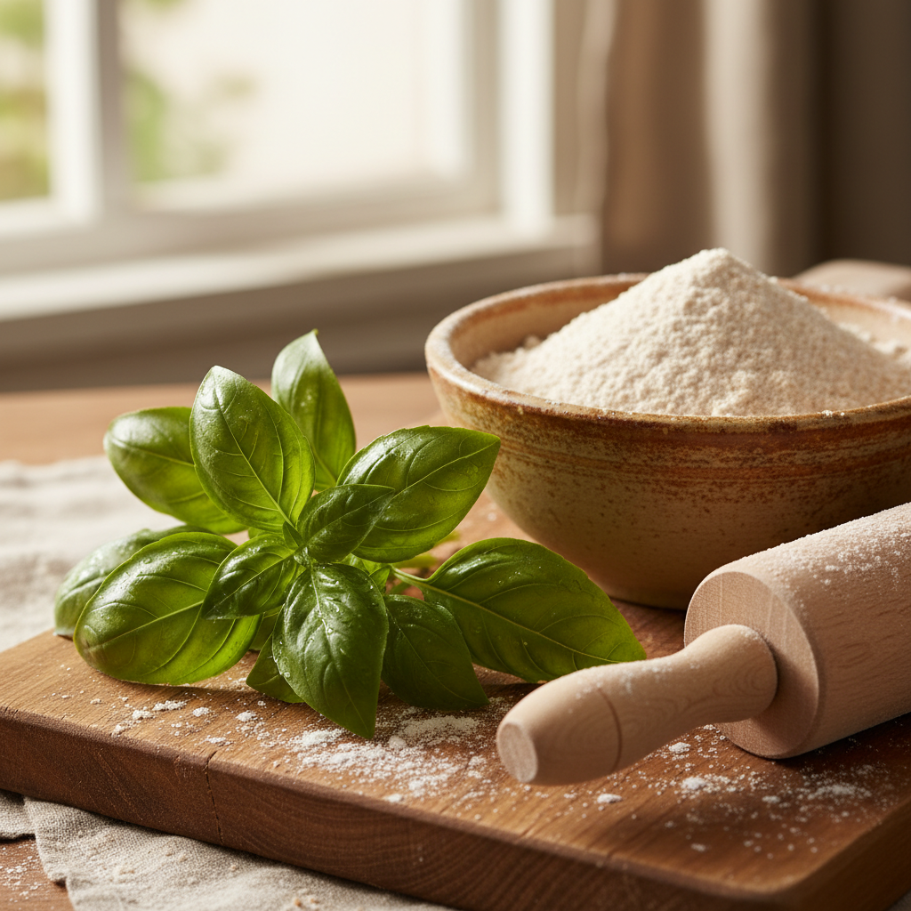 - Mix Dry Ingredients: In a large bowl, whisk together the whole wheat flour and the finely chopped fresh basil until the basil is evenly distributed.