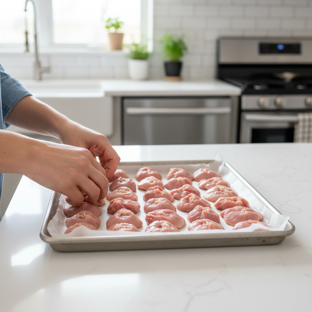 - Arrange on Baking Sheet: Line a baking sheet with parchment paper for easy cleanup. Place the gizzards on the sheet in a single layer, making sure they don’t touch. This ensures they dry evenly.