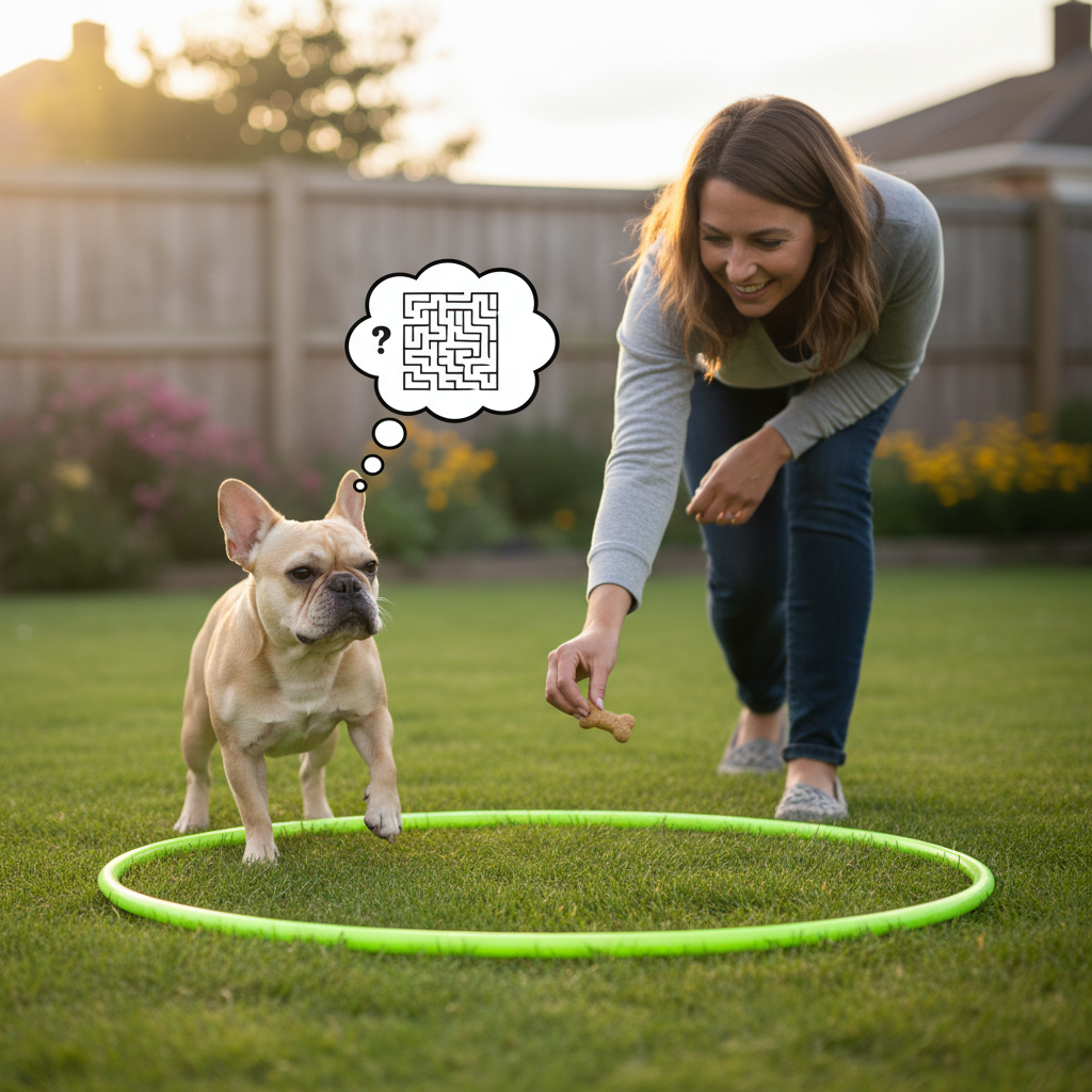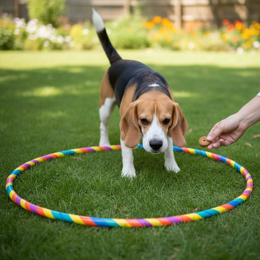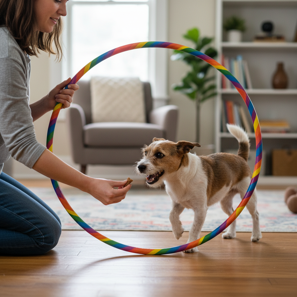 The first step is all about creating a positive association with this strange new plastic circle. We don’t want the dog to be scared of it; we want them to see it as a gateway to fun and treats. The key here is no jumping yet. We’re just getting them comfortable.