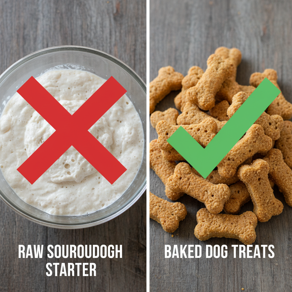 The biggest danger for dogs is raw, unbaked dough of any kind, including sourdough starter and dough. When ingested, the live yeast can continue to ferment in your dog’s warm stomach, producing alcohol (which can cause alcohol poisoning) and carbon dioxide gas. This gas can cause severe bloating, a life-threatening condition known as Gastric Dilatation-Volvulus (GDV), or ‘bloat’.
