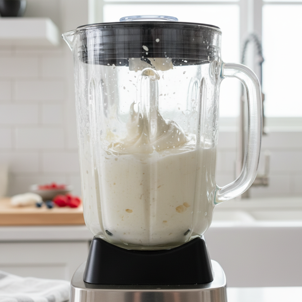 - Whip It Good: Blend on high for 30-60 seconds. You’ll see it transform from lumpy curds into a smooth, light, and airy consistency, similar to Greek yogurt or sour cream. Scrape down the sides if needed and blend again to ensure there are no lumps.