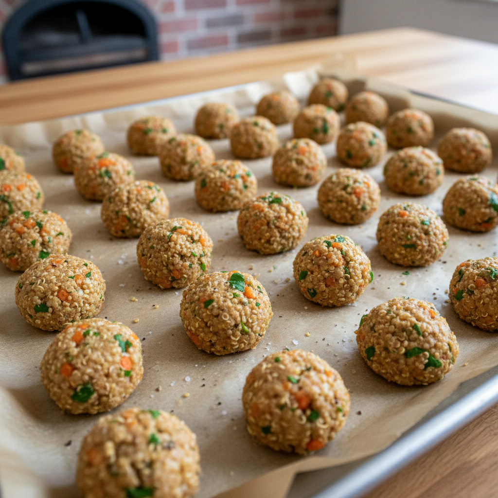 - Using your hands or a small spoon, form the mixture into small, bite-sized balls or patties (about 1-inch in diameter). Place them on the prepared baking sheet.