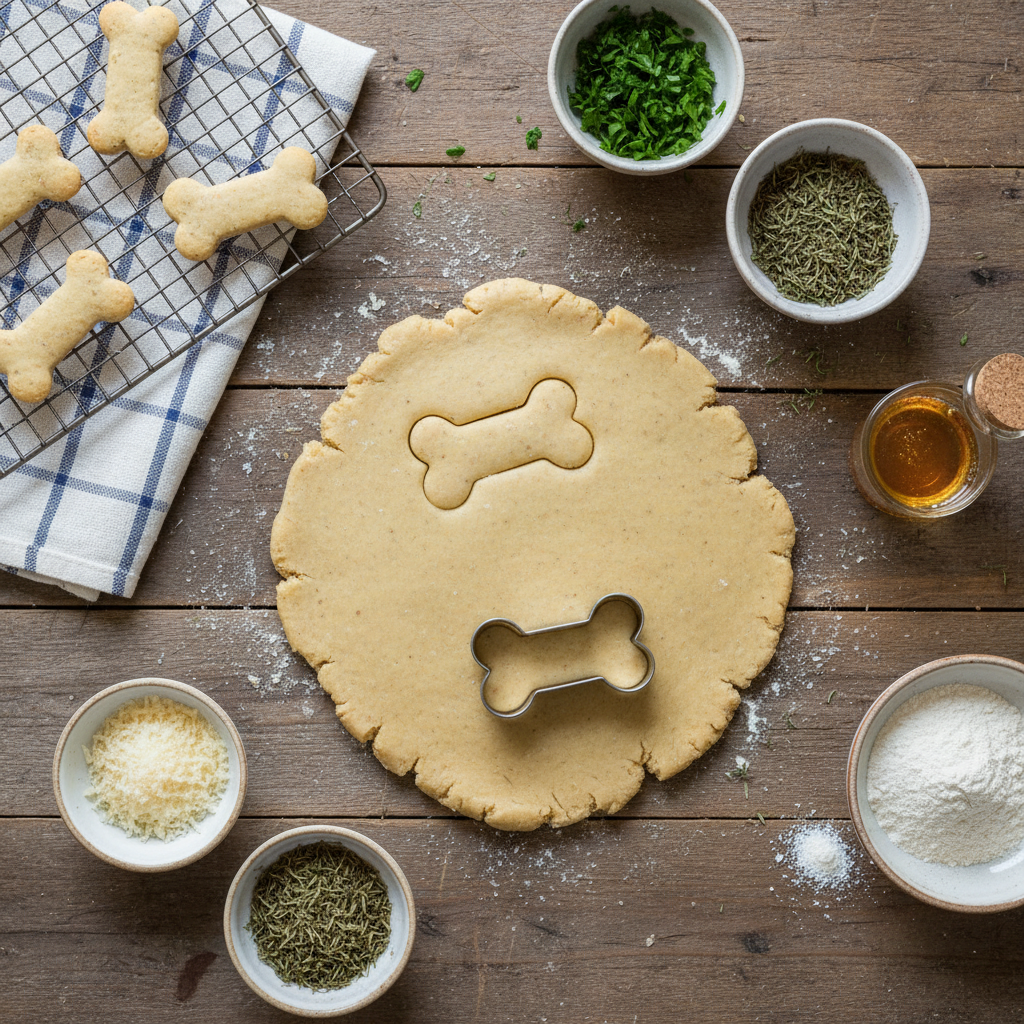 - Roll and Cut: Roll the dough out to about 1/4-inch thickness. Use a fun cookie cutter (like a bone shape!) to cut out your biscuits and place them on the prepared baking sheet.