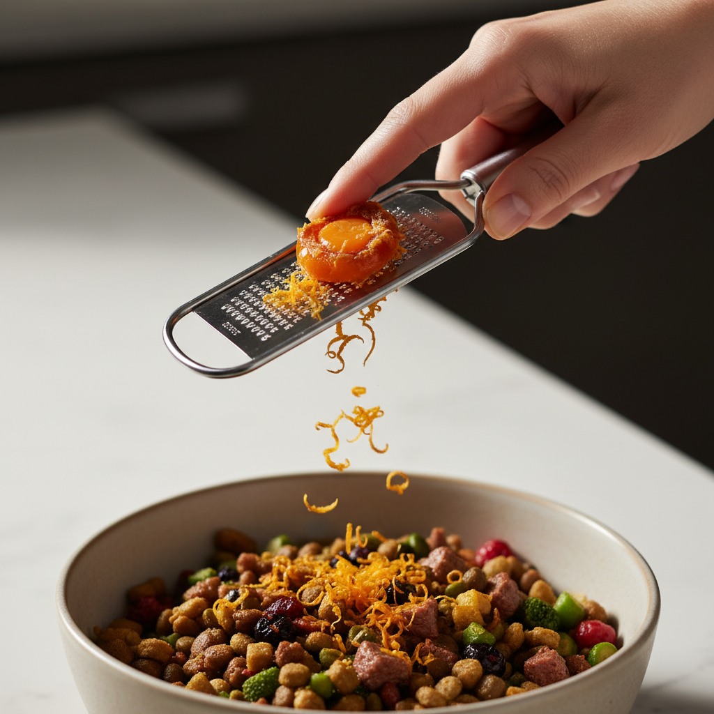 - The Ultimate Meal Topper: The best way to serve a cured egg yolk is to grate it over your dog’s food. A microplane or a fine cheese grater works perfectly. Just a light dusting is all you need to make their meal irresistible.