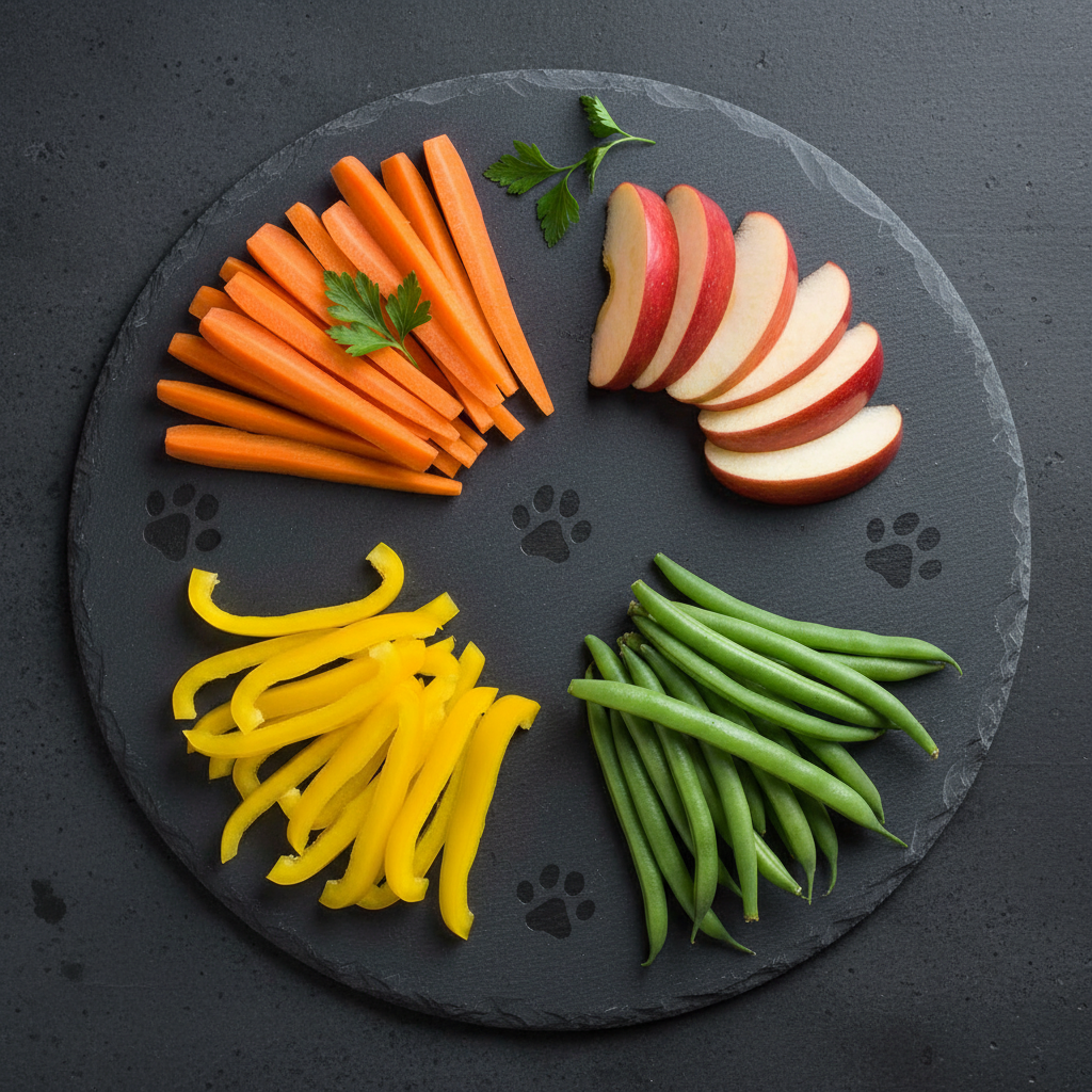 | Carrot Sticks | Hard and crunchy, great for scraping teeth. High in Vitamin A. | Serve raw as sticks or bite-sized chunks. |