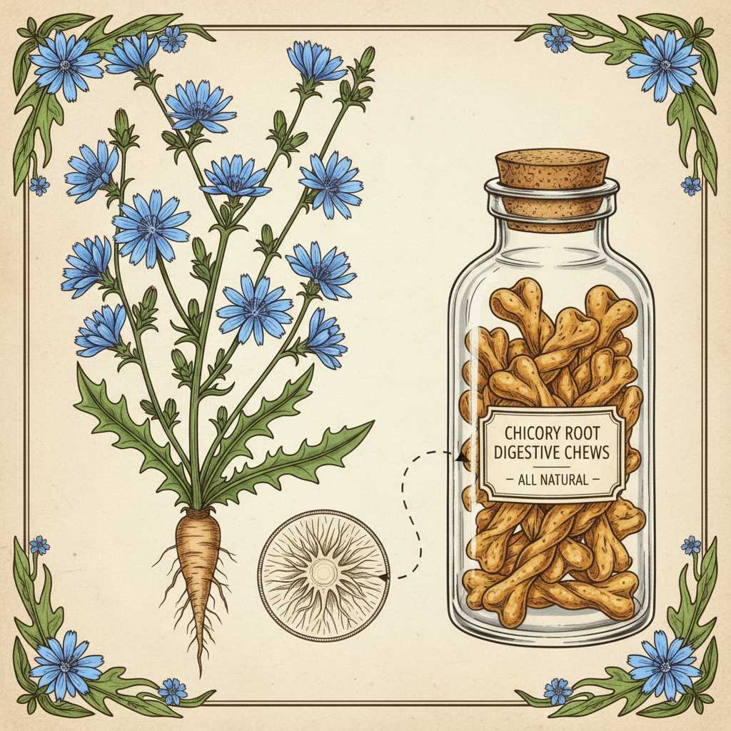 We’ve all been there. You’re relaxing on the couch, and suddenly you hear it—the gurgles, the rumbles, the unmistakable sounds of a dog’s digestive system in distress. Or maybe you’re all too familiar with the unpleasantness of inconsistent potty breaks. A happy dog starts with a happy gut, and when their tummy is out of sorts, it can affect their whole mood (and yours!). For years, we’ve focused on probiotics—the ‘good bacteria’—but what if the secret to a balanced canine gut is actually feeding the good guys that are already there? Enter prebiotic chicory root chews, a simple and tasty supplement that’s making waves in the world of canine wellness. In this guide, we’ll dig into what chicory root is, how it works its magic on your dog’s digestion, and how to safely add it to their routine for a healthier, happier pup.