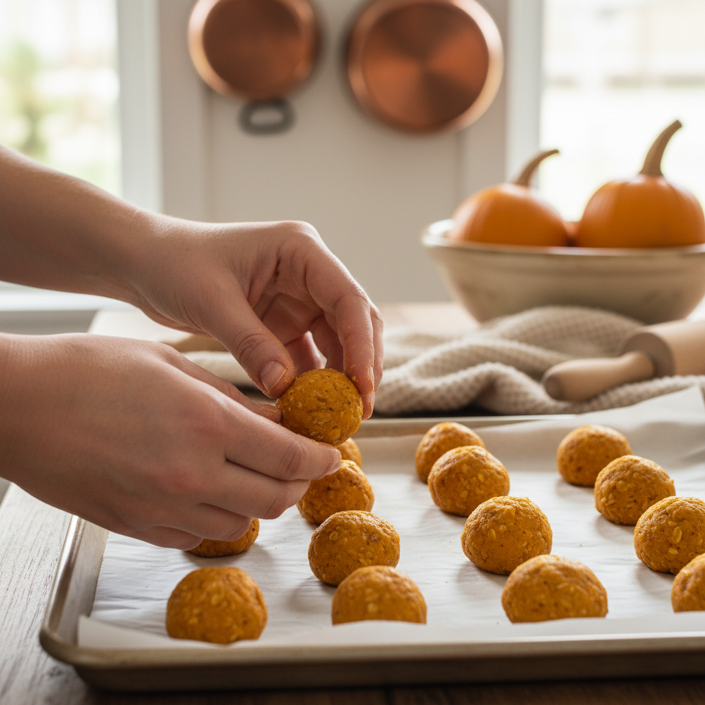- Form the Treats: This dough will be too sticky to roll out. The easiest way to form the treats is to take a small spoonful (about a teaspoon’s worth) and roll it between your palms to form a small ball. Place the balls on your prepared baking sheet, about an inch apart.