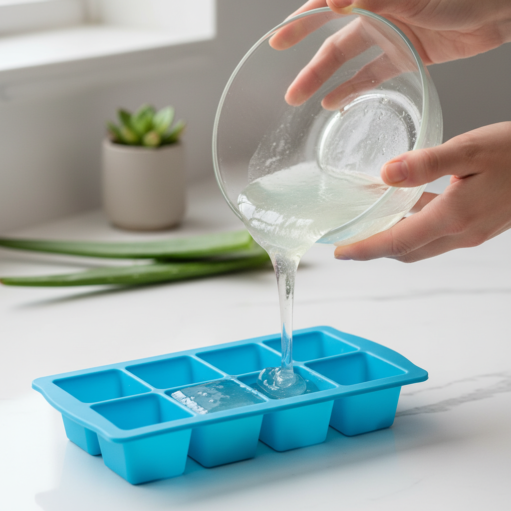- Pour into the Tray: Carefully pour the aloe mixture into the sections of your ice cube tray. Don’t overfill them.