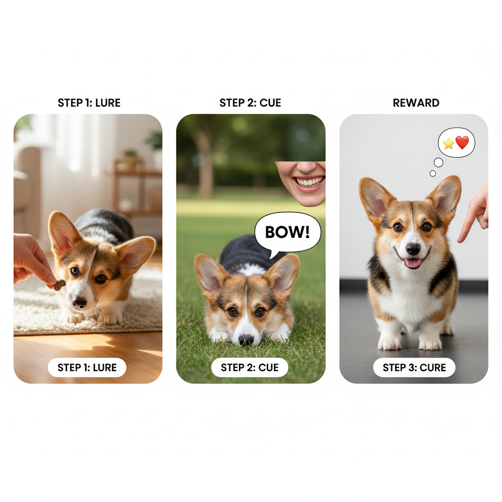 The pattern is now: Cue -> Lure -> Bow -> Mark & Reward. Repetition is your best friend here. Your dog is building an association between the word you’re saying and the action they’re performing.