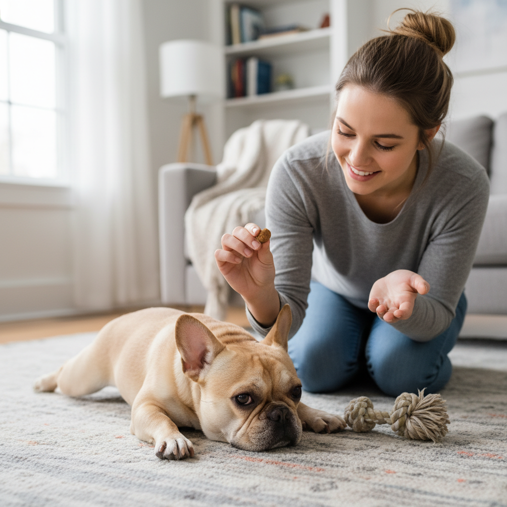 Some dogs will back away from the downward pressure of the lure. The Fix: Try practicing with your dog in a space where they can’t easily back up, like in front of a sofa or near a wall. This encourages them to move down instead of back. - The Problem: My dog isn’t interested in the treats.