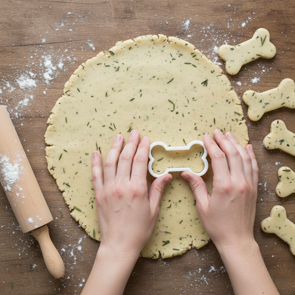 5. Roll and Cut: Lightly flour a clean surface and turn the dough out. Knead it gently a few times until it comes together smoothly. Roll the dough out to about ¼-inch thickness. Now, use your favorite cookie cutters (bone shapes are always a hit!) to cut out the biscuits.