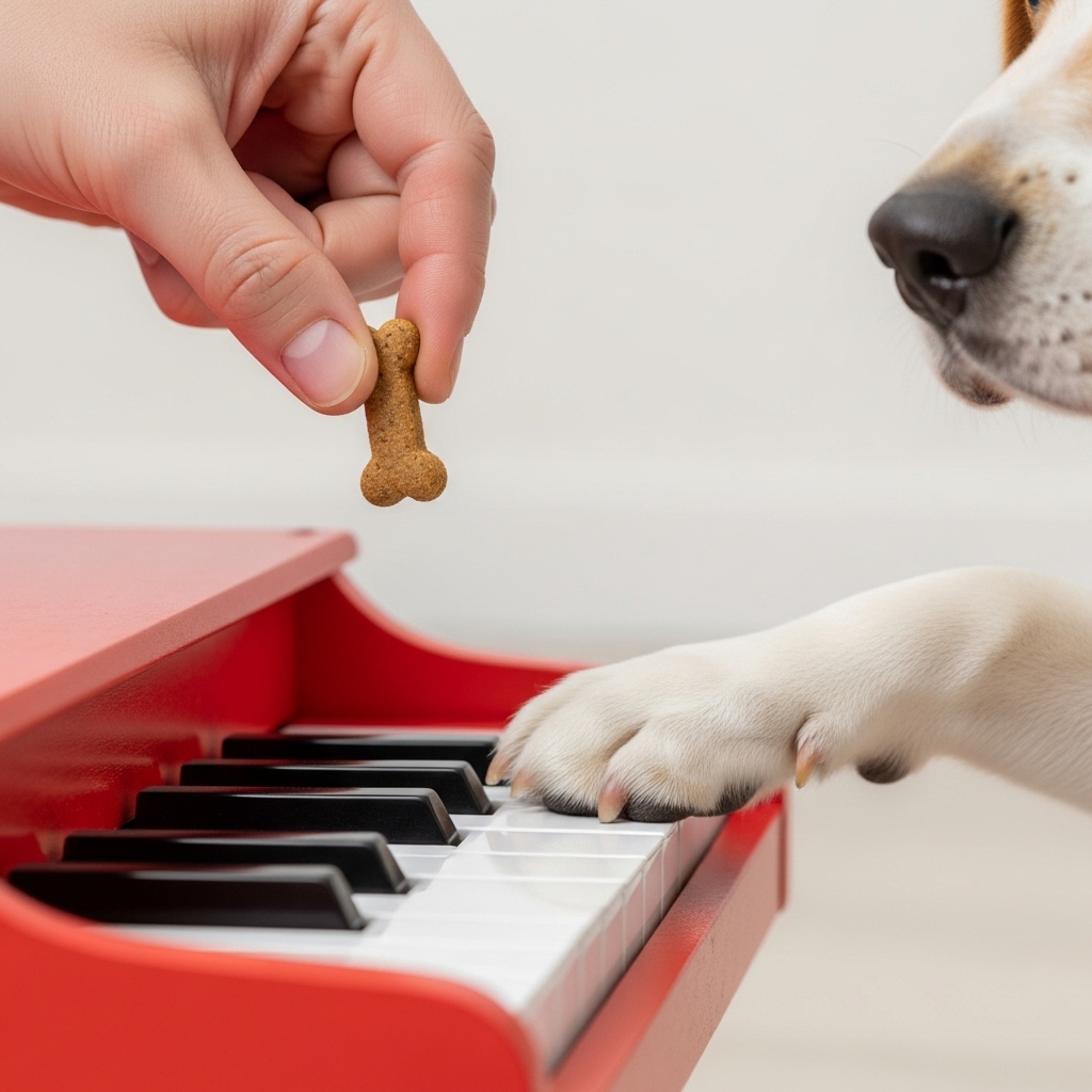 - Step 1: Introduce the Instrument. Place the piano on the floor and just let your dog check it out. Don’t ask for anything yet. If they sniff it, look at it, or even walk near it, click and treat! We want them to form a positive association with this new object. Make the piano the coolest thing in the room.