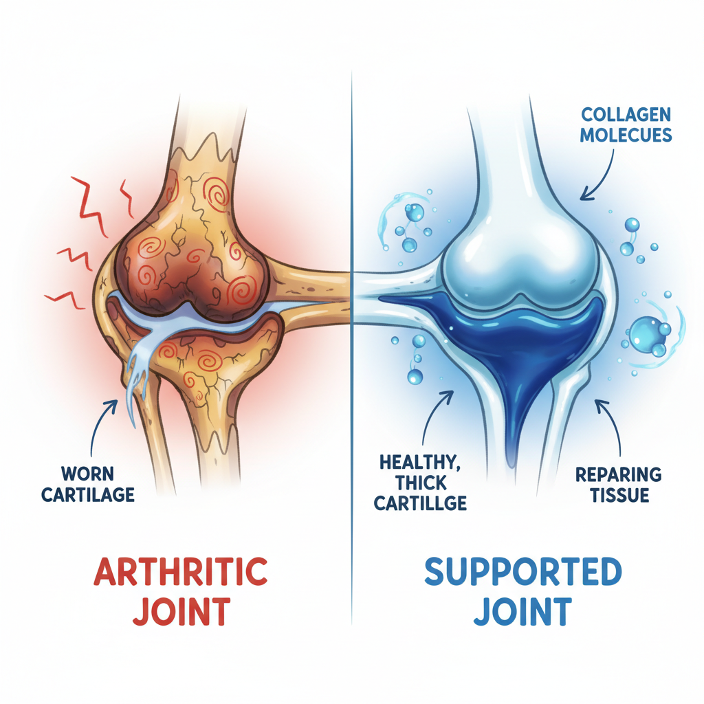 - Rebuilds Cartilage: Collagen provides the essential amino acids that are the primary components of cartilage. Supplementing with it can help stimulate the body to produce more, potentially slowing down the degenerative process.